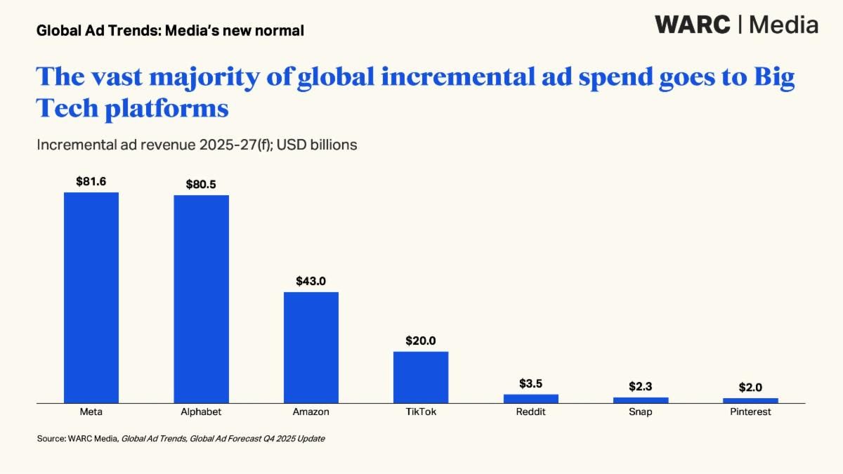 Beyond these outliers, the concentration of incremental growth is self-reinforcing. Big Tech’s scale gives it an unparalleled ability to invest in research and development, especially AI-driven optimisation, creative automation and first-party data infrastructure.